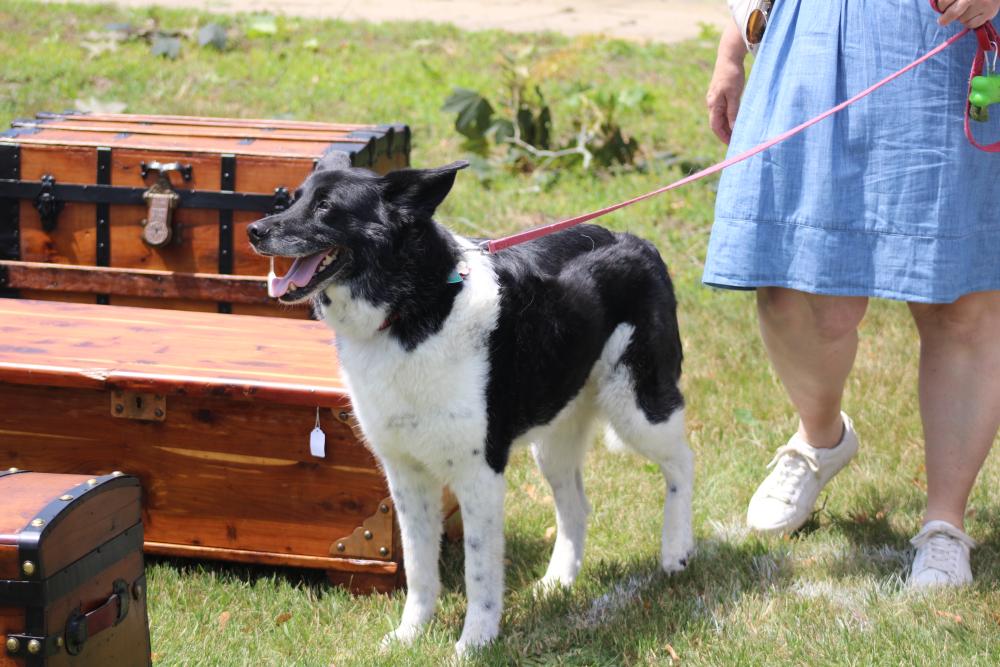 Many people were seen with pets while they perused the items set out on the tables. One of these participants was Denise Demers from Carver and her dog Angus.