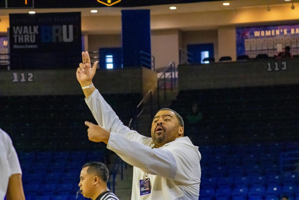 Head Coach Steve Faniel directs his players.