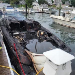 At around 6 p.m. on Friday, the Wareham Department of Natural Resources announced that the “incident [is] under control.” A photo posted by the department showed a charred and severely damaged boat.