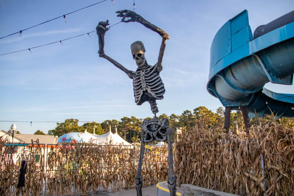 While the water slides may not be open, the park is decorated with ghouls, goblins and everything spooky as well as a variety of carnival games and other attractions. There is a trick-or-treat trail for kids and a haunted house that opens up in the evening.