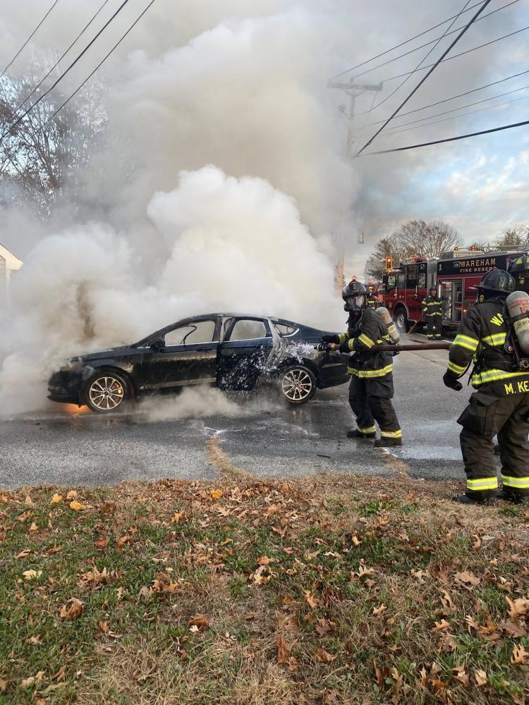 The car was a 2017 Ford Fusion. Photo Source: Wareham Fire Department