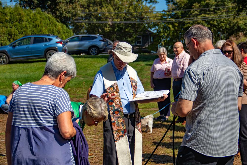 Close to a dozen people showed up to the church located at 74 High Street some with their pets others with pictures to be blessed by Reverend Dan Bernier.