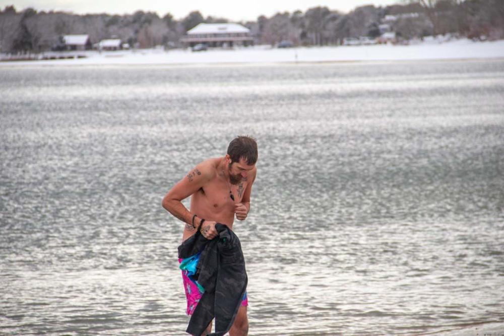 Prior to actually taking the plunge, participants lined up on Onset Beach which was covered in the morning’s snowfall and many said the snow made the day more memorable.