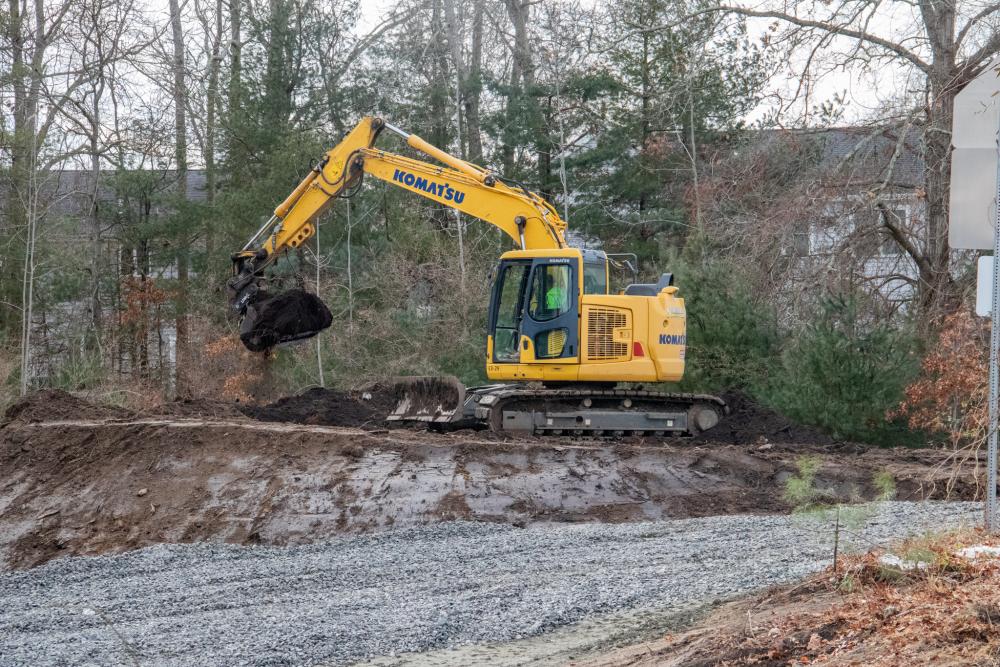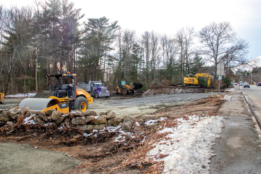 Construction is being done near Town Hall to clear space for materials and equipment being used to replace the bridge on Route 6 over the Weweantic River.