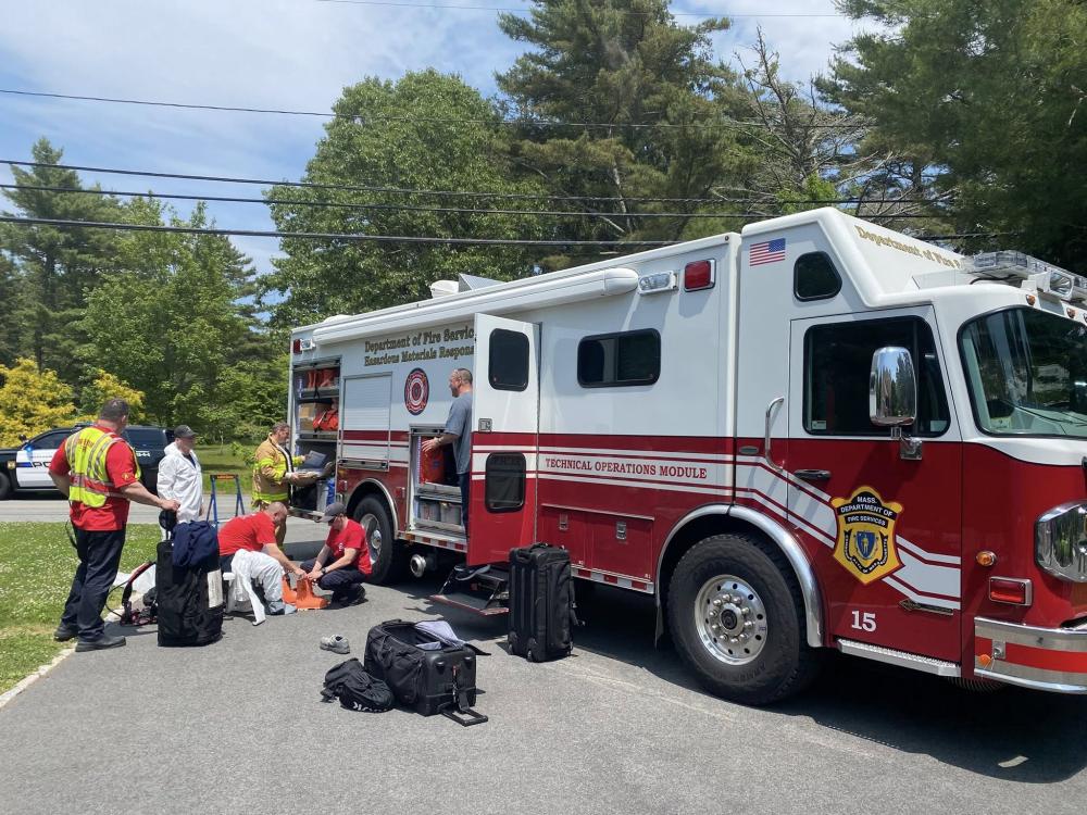 Massachusetts Department of Fire Services Hazardous Materials Response Team was ordered to the scene. Firefighters secured the area, while HAZMAT dealt with the spilled substance.