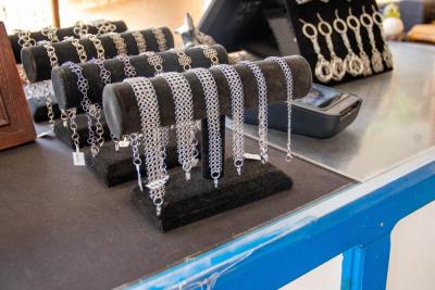 Along with rings, the two make key chains, lanyards and a variety of other pieces of jewelry including a belt featured in the Apple TV movie “Spirited,” a modern version of Charles Dickens’ “A Christmas Carol.” The belt was worn by the ghost of Christmas future.
