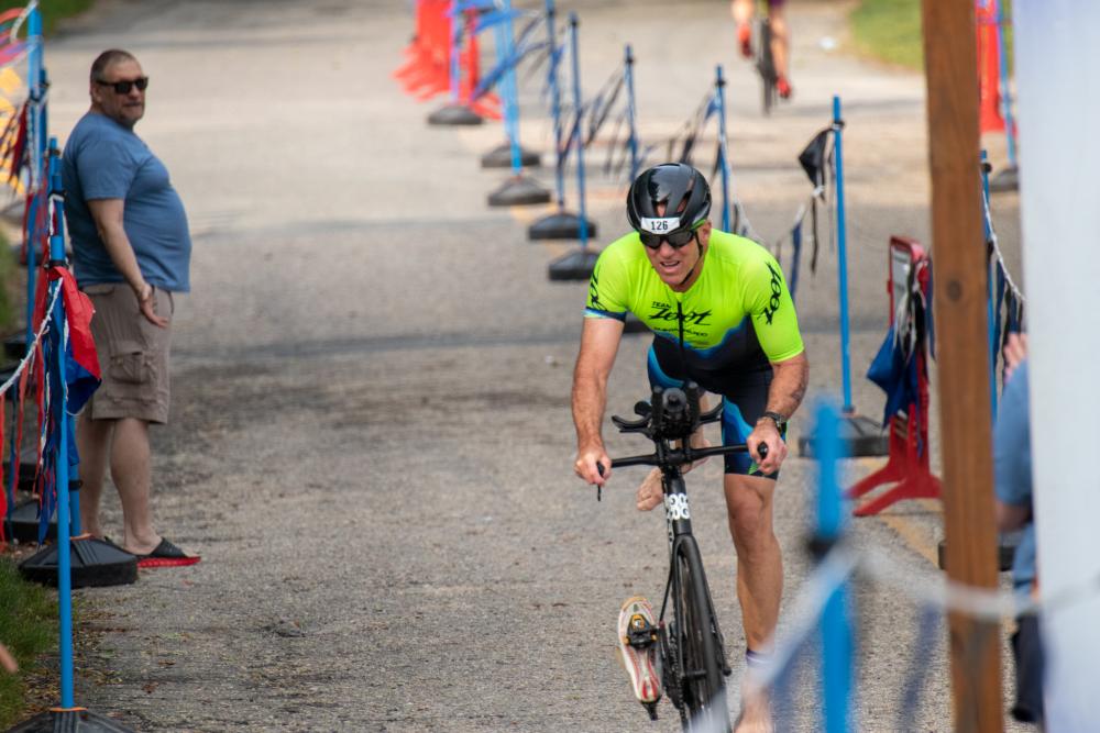 The triathlon brought over 400 athletes together to run, swim and bike in one of two triathlons. The sprint race consisted of a third of a mile swim, an 11.5 mile bike and a 3.5 mile run. The olympic race was about double the length according to Richmond with a 0.9 mile swim, a 20 mile bike ride and a 10k run.