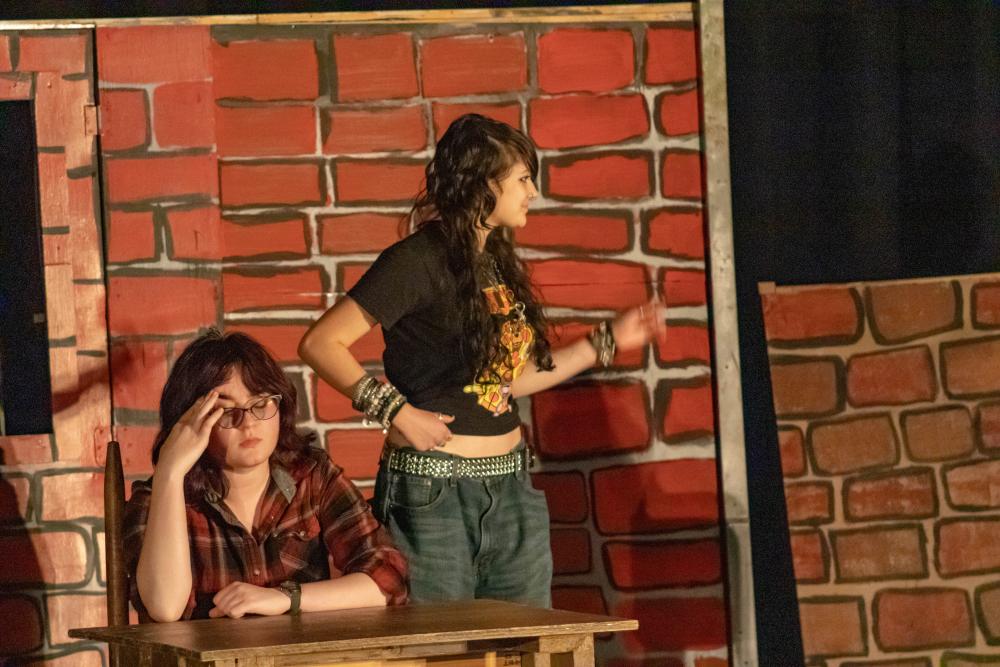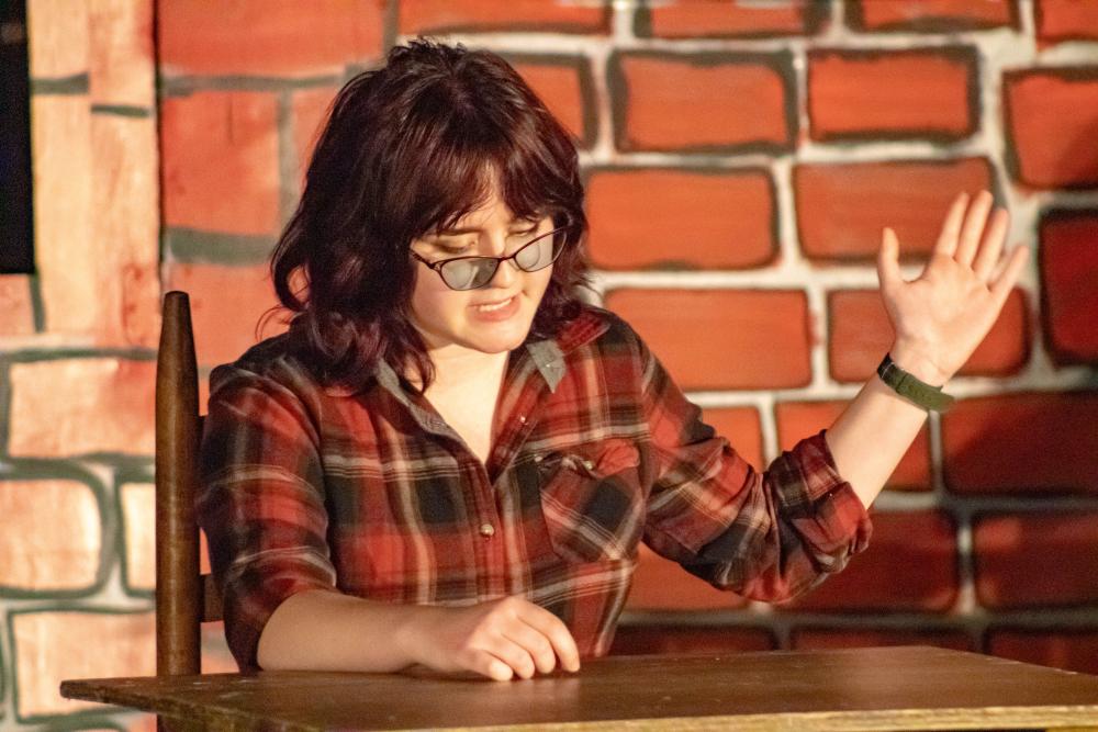 Ariana O'Riley puts her acting skills on during rehearsal.