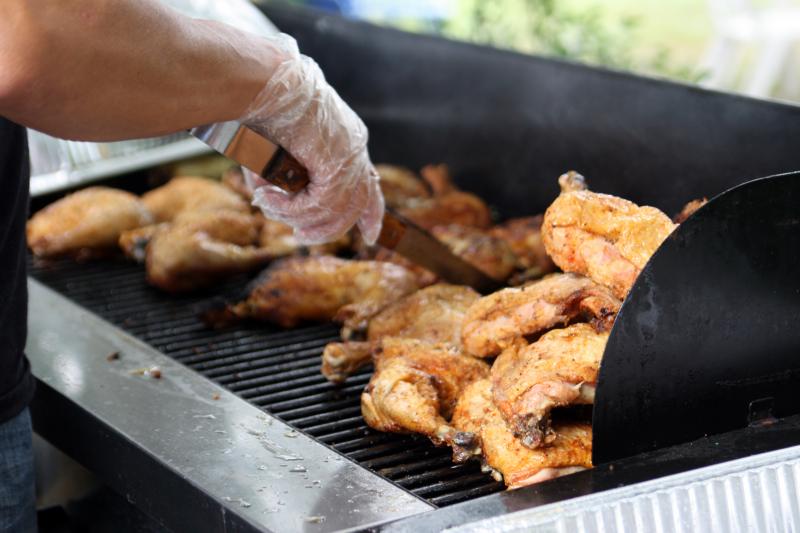 John Lomba, of the Cape Verdeans United Organization, cooks up some chicken. BY MATTHEW BERNAT