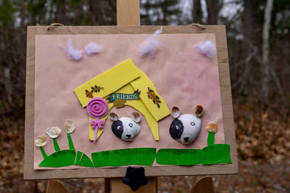 One piece of art shell-abrates a pair of dogs. Who let the dogs out? Partygoers celebrating the Wareham Dog Park’s third birthday, of course.