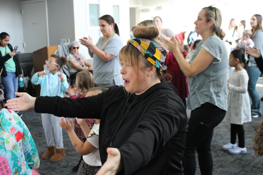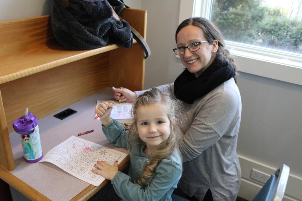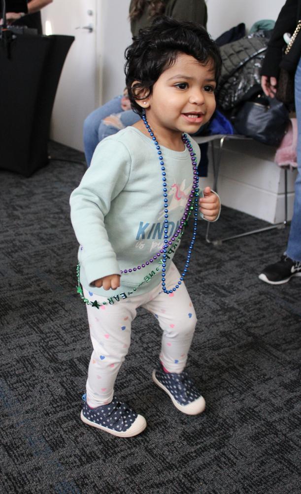Taking a break from all of the dancing with DJ Ooch, Quinn Litchfield and her mom Kaytelynn Ringer were cozied up with New Years-themed coloring pages. Using her favorite colors of pink and purple while she colored, Quinn said she's excited for her baby sister to turn one in the next year.