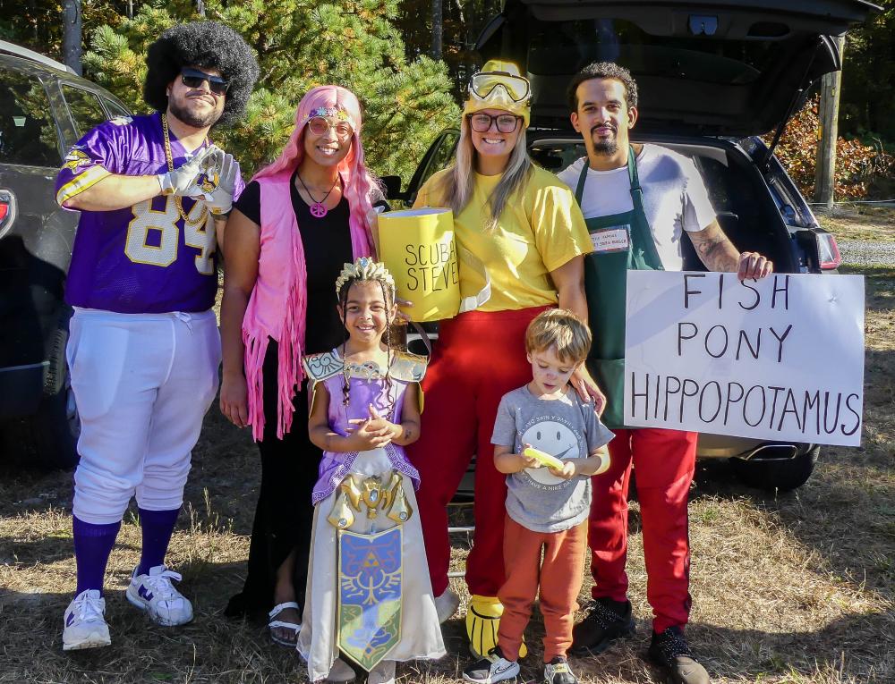 (Back) Kyle Melo, Brianna Gamble, Rachel Marzelli and Devin Monteiro with (front) Brielle Melo, 5, and Elijah Monteiro, 3, at the Trunk-or-Treat.