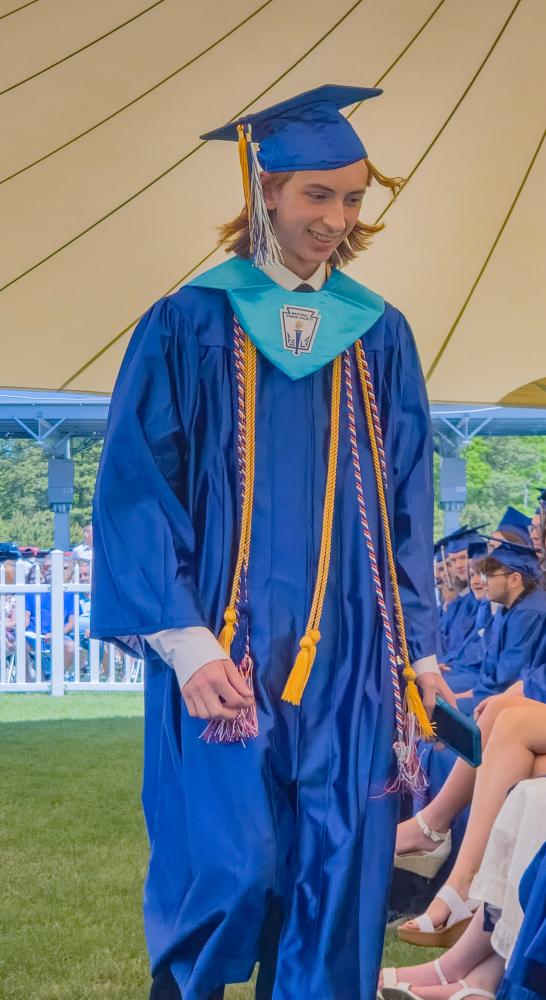 Fellow Class of 2024 member and Outstanding Vocational Technical Student of the Year Gideon Drury followed Moulding with comments on a similar theme. Drury is a Falmouth resident and graduate of the electronic program who will attend Worcester Polytechnic Institute to study electrical engineering, said Forget.