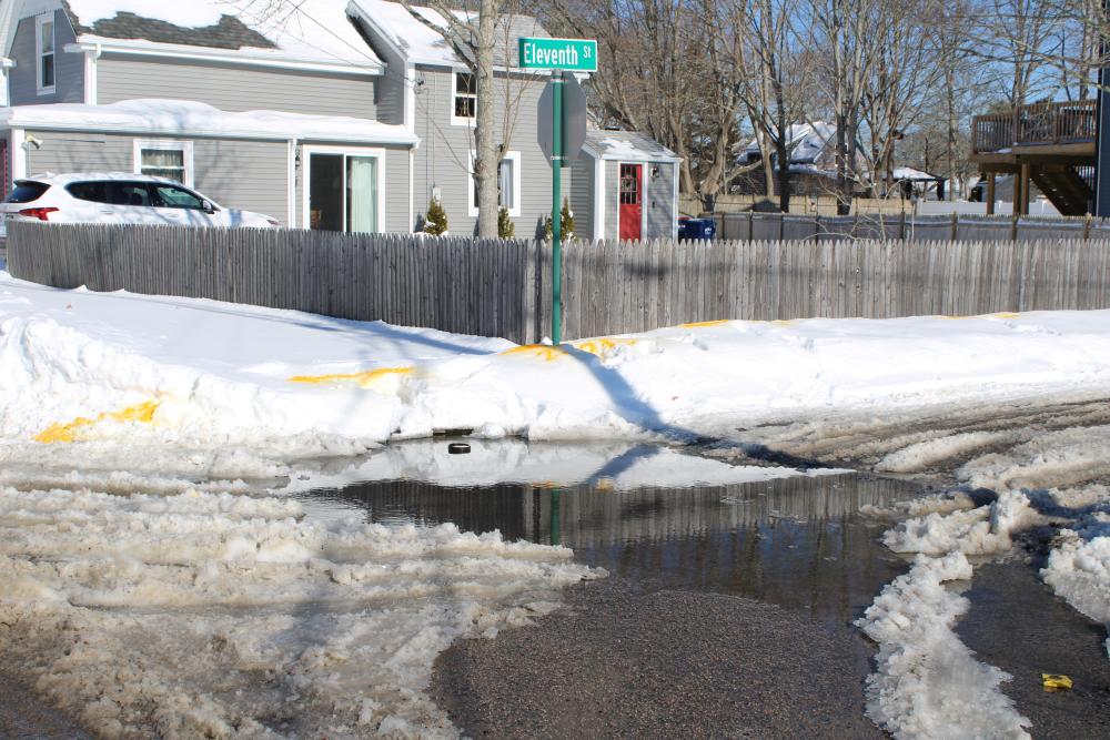With water trickling onto Onset Avenue, Camp Street is closed following a water main break.