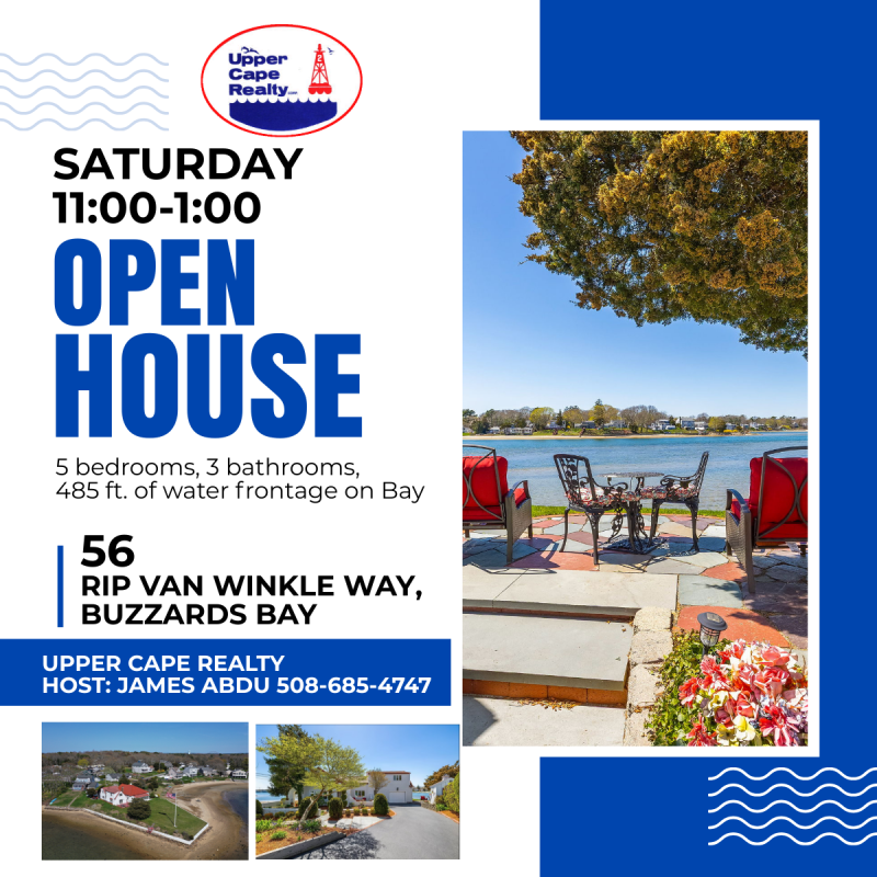 OPEN HOUSE SATURDAY, OCTOBER 4, 2025 from 11:00am-1:00pm at 56 Rip Van Winkle Way, Buzzards Bay ... for the discerning buyer looking for it all! Escape the ordinary and discover a true waterfront paradise. We invite you to an open house for an exquisite 5-bedroom coastal home nestled on tranquil Buttermilk Bay with 485 ft. of water frontage - views from every room even the garage! Excellent opportunity to showcase a property that combines exceptional living with a coveted seaside location. The breathtaking views and beach access create an unparalleled retreat for year-round living or a seasonal escape. This property has been lovingly maintained and updated by the current owner. Reach out to listing agent James Abdu if you have any questions or concerns 508-685-4747